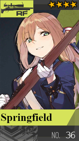 Hi there, M1903 Springfield, named after manufacturer. The name itself means "field in springtime". I have served long, been to a lot, experienced countless wars, and gained much glory. Now I have the honor to serve you. Commander, let's enjoy each other's company.